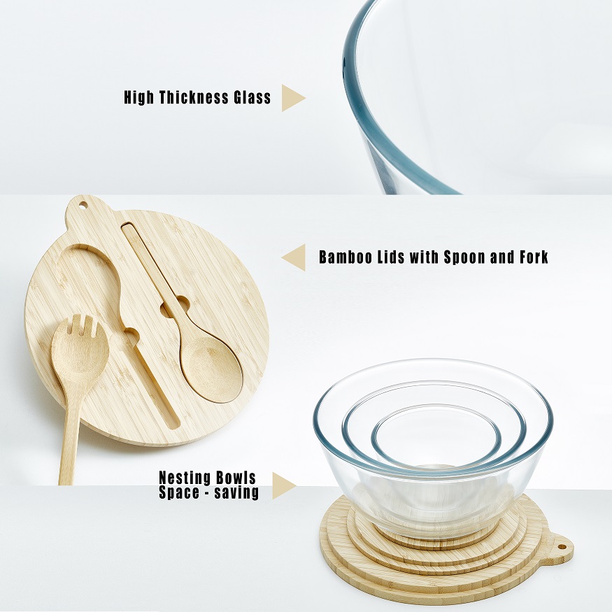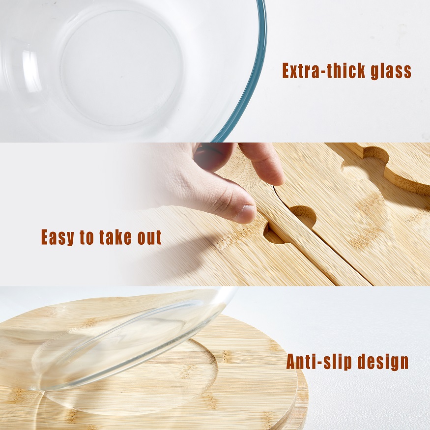 A lid made of high mountain logs and a bowl made of high borosilicate glass ,different size for different use .
